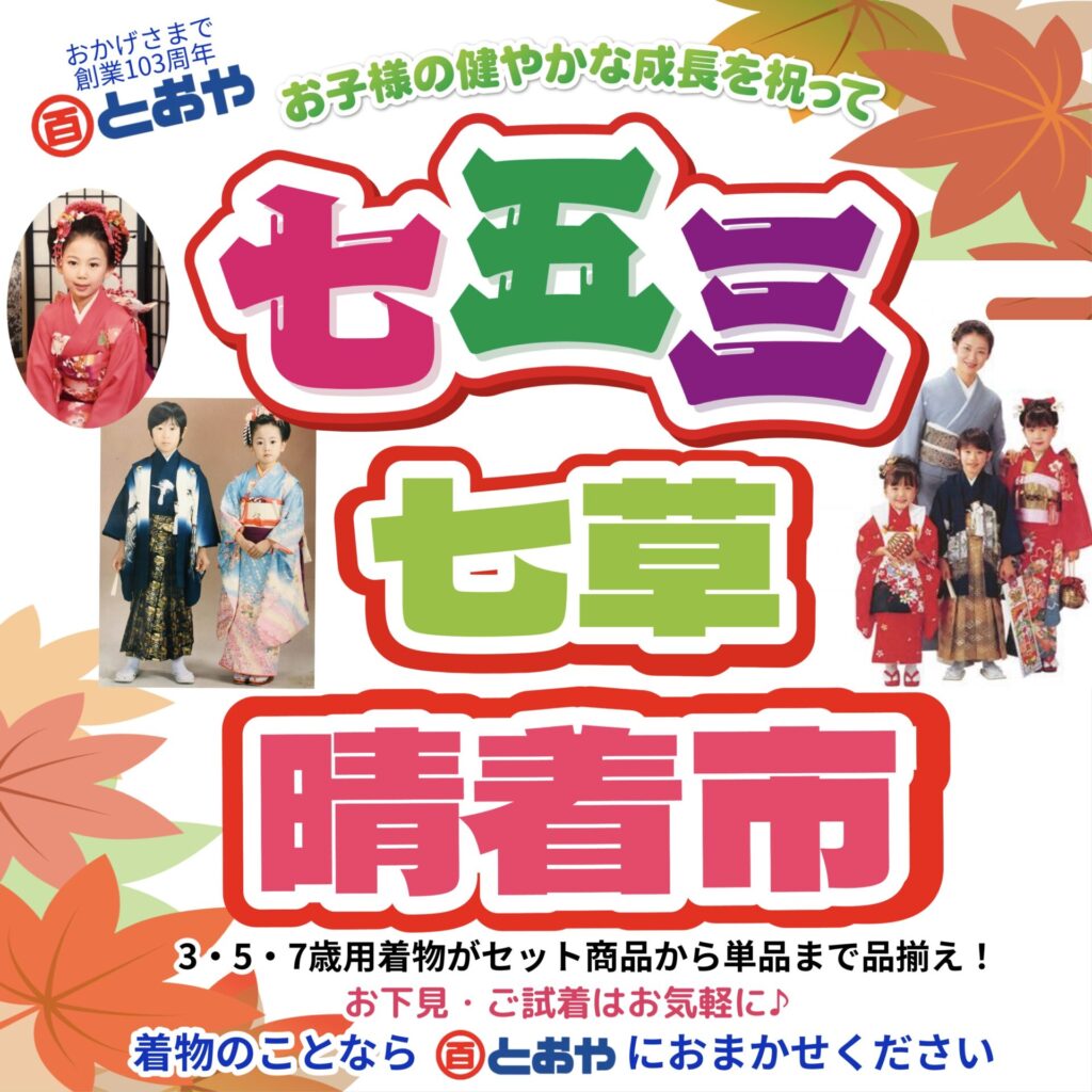 11/15は七五三 1/7は七草祝い 子供晴着はとおやで!お気軽にご相談ください。