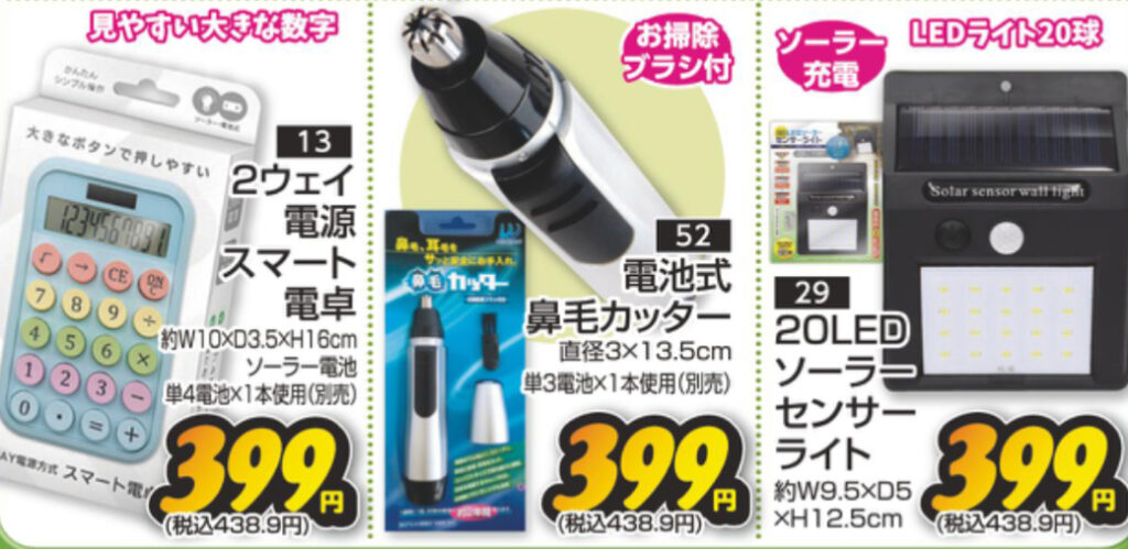 電卓・鼻毛カッター・ソーラーセンサーライト:2階