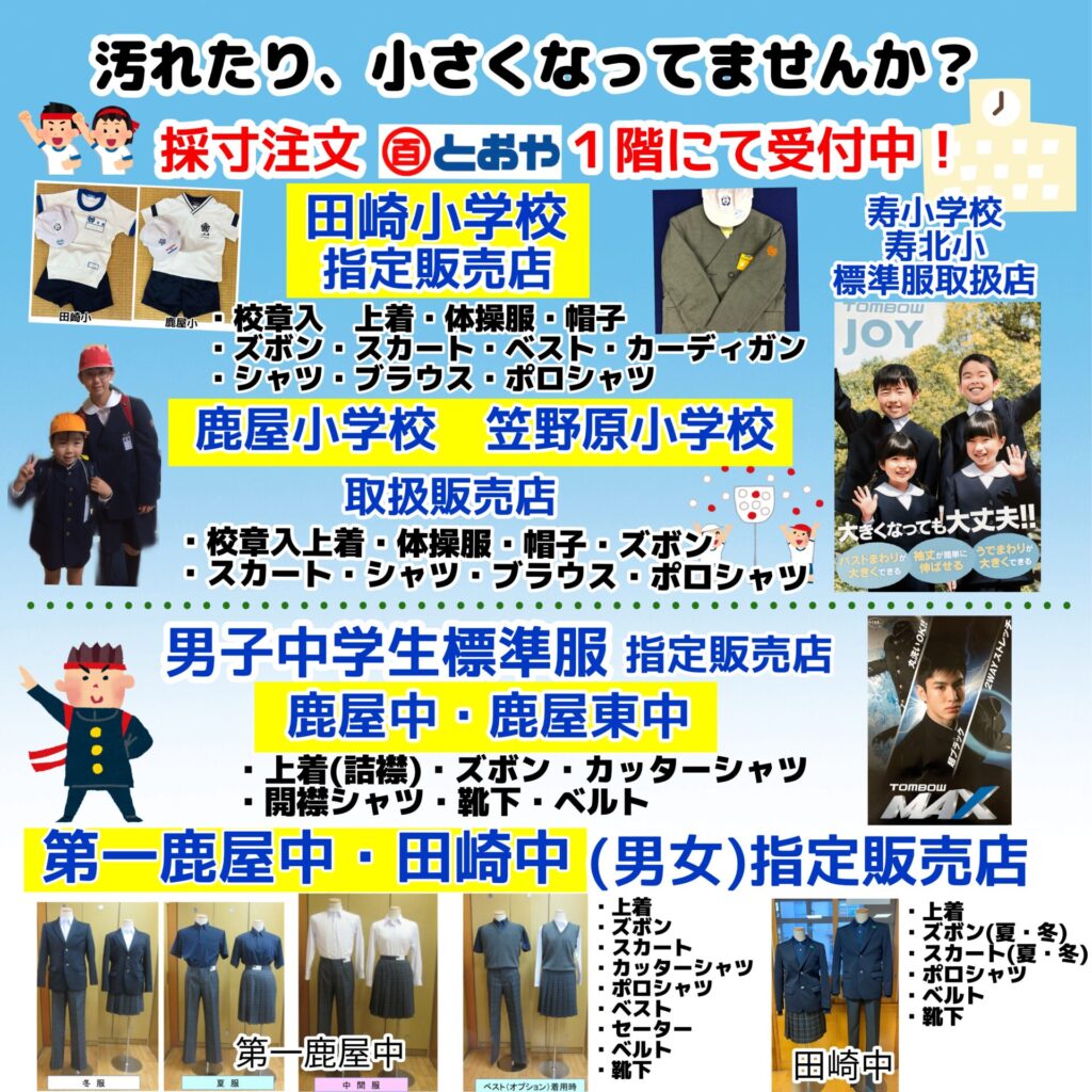 もうすぐ運動会ですね。体操服、帽子のご準備はとおやで!