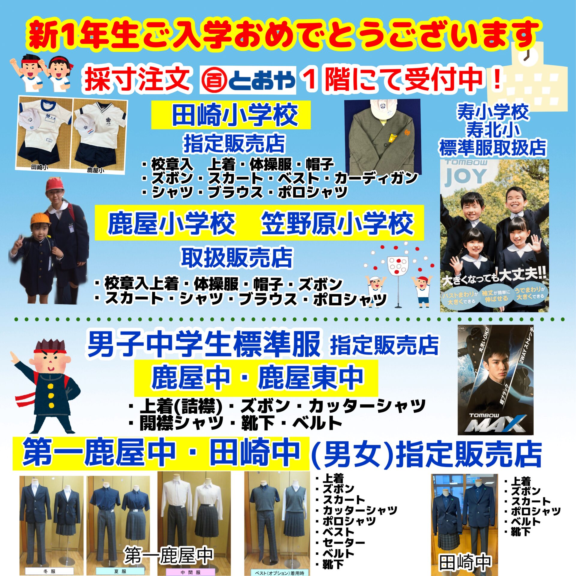 新入学・ご進学の皆様 制服の採寸注文を1階売場にて受付中です