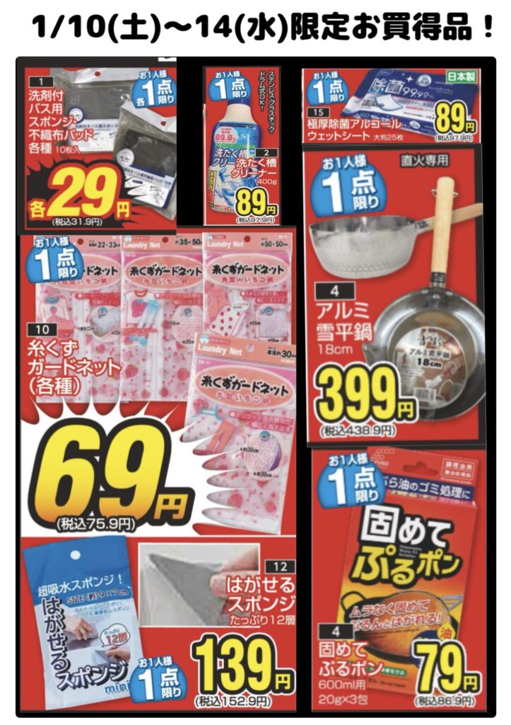 1/10(土)~14(水)限定お買得品:1階正面入口