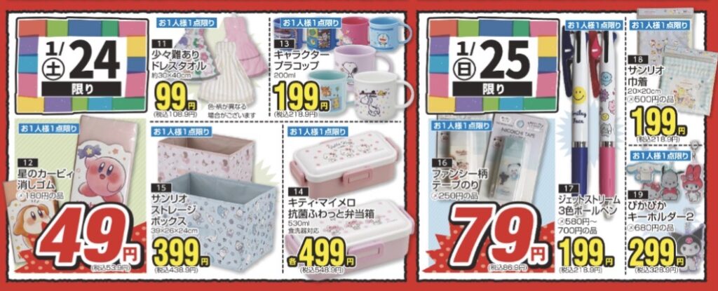 1/28(水)までのチラシ売出「入園・入学 新生活応援フェア!★冬服・寝具・インナー・ソックスも大幅値下げ!冬物衣料クリアランスセール」のおしらせ 「きものお手入れ相談」「振袖の祭典・ママ振り相談会・婦人はかまフェア」開催中 新一年生学生服(小・中学生)の採寸の注文受付中です ハッピーワーク共通クーポンご利用できます(1/10~2/28)