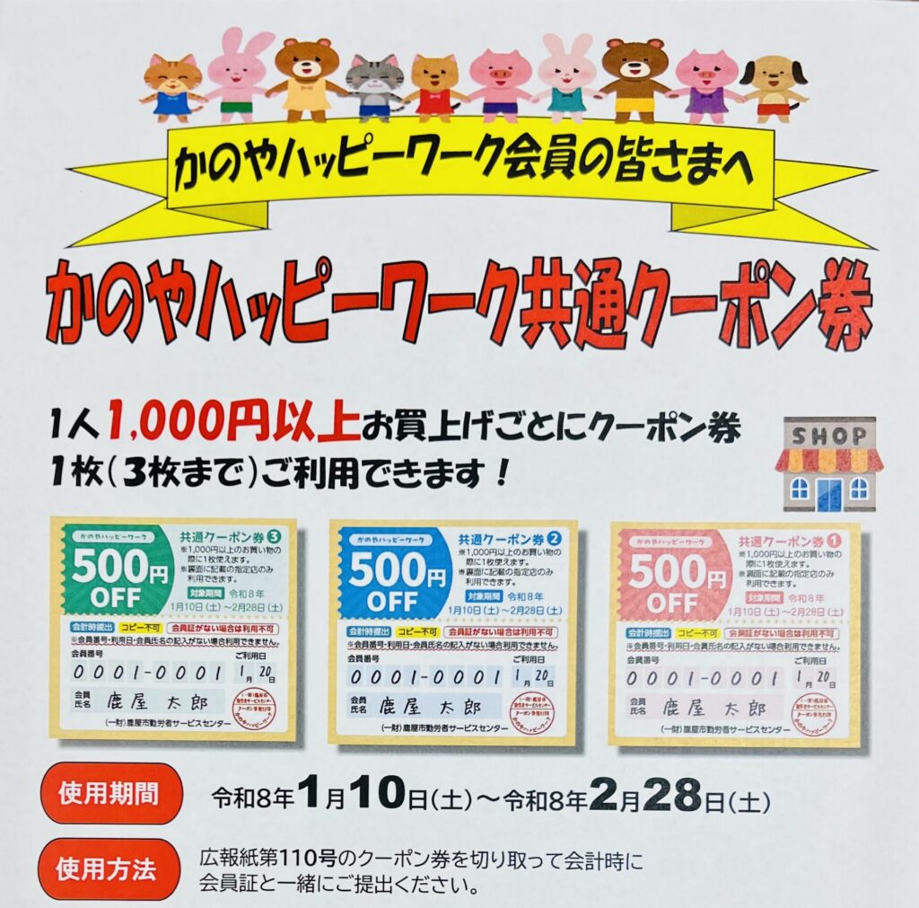 かのやハッピーワーク共通クーポン券もご利用できます