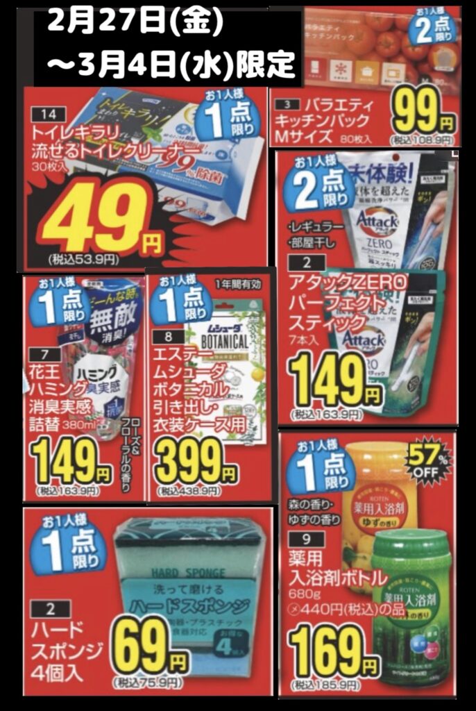 2/27(金)〜3/4(水)限定お買得品