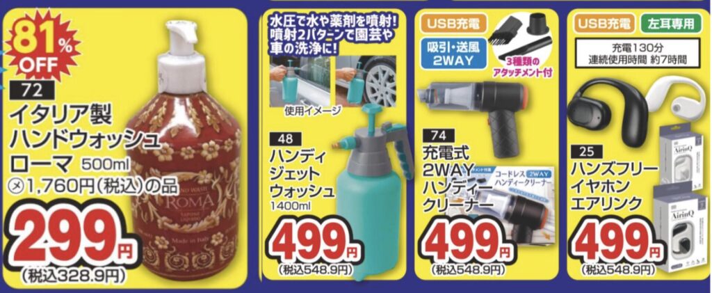 ハンドウォッシュ・ジェットウォッシュ・ハンディクリーナーイヤホン・ライト:2階